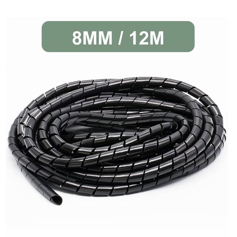 Spiral Hose, Cable Sleeve, Universal Cable Hose, Flexible Spiral Hose, Cable Organisation, Black, 8 mm Diameter and 11 m Length