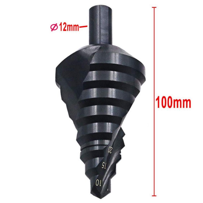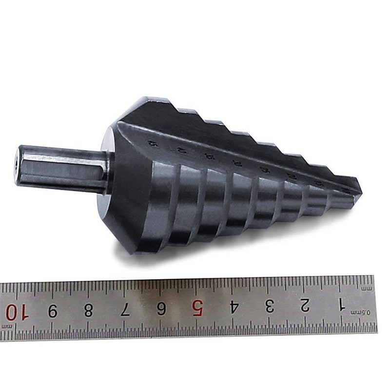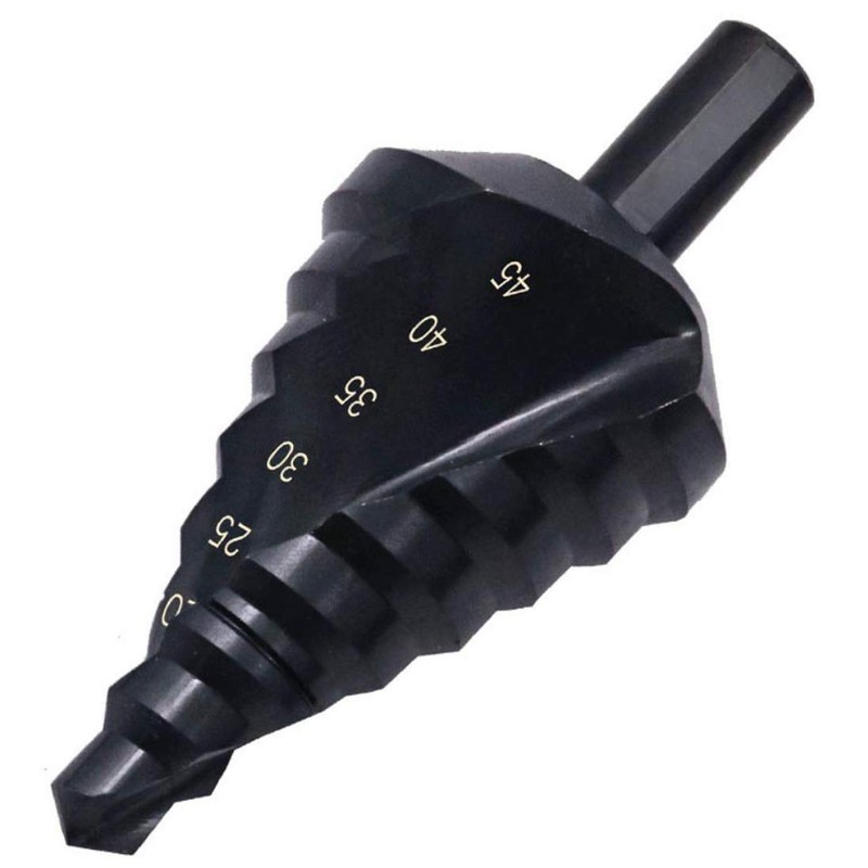 Spiral Nitride Step Drill Bit, Multi-Hole Cutter (0.4 - 1.8 inches (10 - 45 mm), Total 8 Step Sizes, Drilling, Expanding, Metal Sheet, PCV, Woodworking