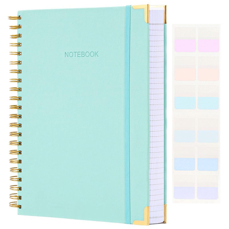 Spiral Notebook, Hardcover Leather Journal for Women Men, 300 Page Thick Notebooks College Ruled for Work, School, Note Taking, Writing Journals, Large A5 Notebook with Tabs Sticky, 5.7" x 8.5", Teal