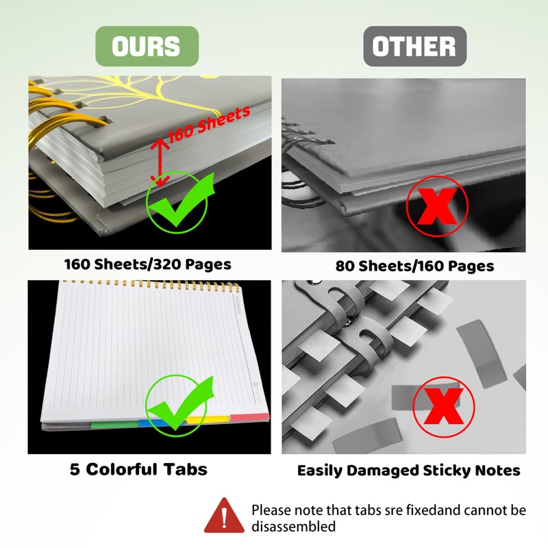 - 【5 FIXED COLOR_CODED TABS】5 fixed color-coded tabs enable quick section navigation and categorization.((Please note that tabs are fixed and cannot be disassembled)