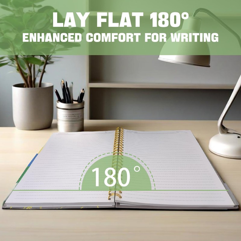 - 【STURDY DOUBLE-WIRE SPIRAL BINDING】- Our spiral notebooks feature a metal double-wire binding, easy page turning as well as the ability to lay flat at 180°. And the hardcover provides protection for your valuable notes.