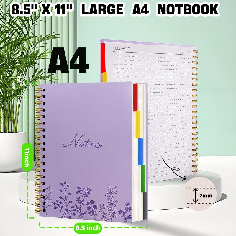 - 【SPACIOUS 320 PAGES/160 SHEETS】Our notebook spiral offers 320 pages (160 sheets), it provides ample space for all your writing needs. The A4 size (12"x8.5") is ideal for extensive note-taking, journaling, or creative writing, giving you plenty of room to capture your thoughts. Whether you’re using it as a notebooks for work, journal for writing, or notebooks for school, it fits easily into your daily routine.