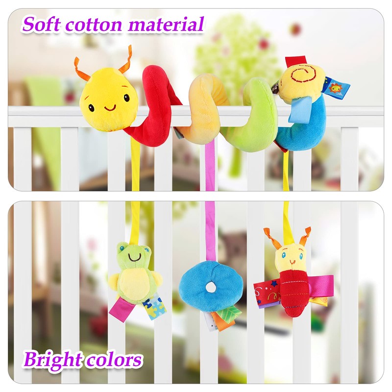 - Safe & Soft Spiral Crib Toy: Hanging stroller toys is made of soft and safe cloth material, non-toxic, BPA-free, no fluorescent additives, no irritation to the babys skin, safety for the baby