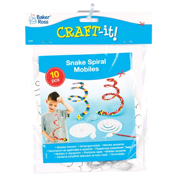Spiral Snake Card Mobiles with Gold Cord for Hanging, 2 Designs for Children to Paint & Decorate (Pack of 10)