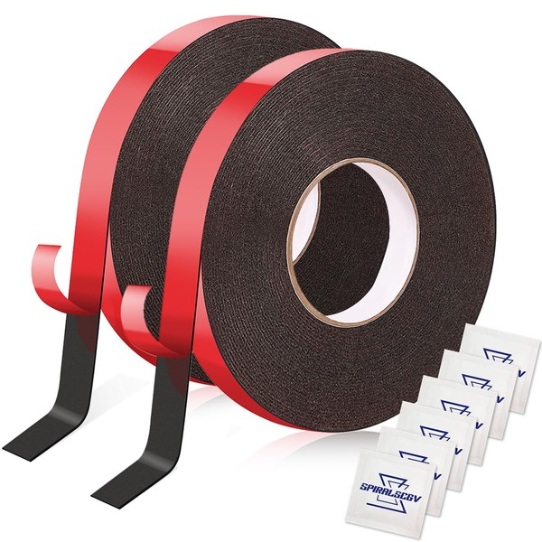 SpiralScgv Double Sided Tape Heavy Duty, Strong Double-Sided Foam Tape, 32.8FT x 0.59IN, Waterproof Adhesive Mounting Tape, Suitable for Walls, LED Light Strips, Home, Automotive, Outdoor (2 Packs)