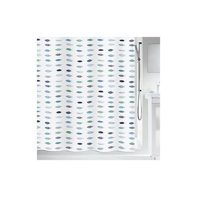 Spirella 10.19261 Santorini Blue Textile Shower Curtain – Fabric Shower Curtain, 180 x 200 cm Blue