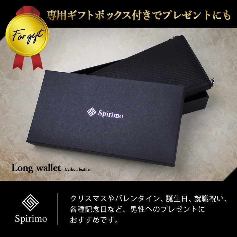 Spirimo Men's Long Wallet, Carbon Leather, L-Shaped Zipper, Genuine Leather, Large Capacity, YKK, navy