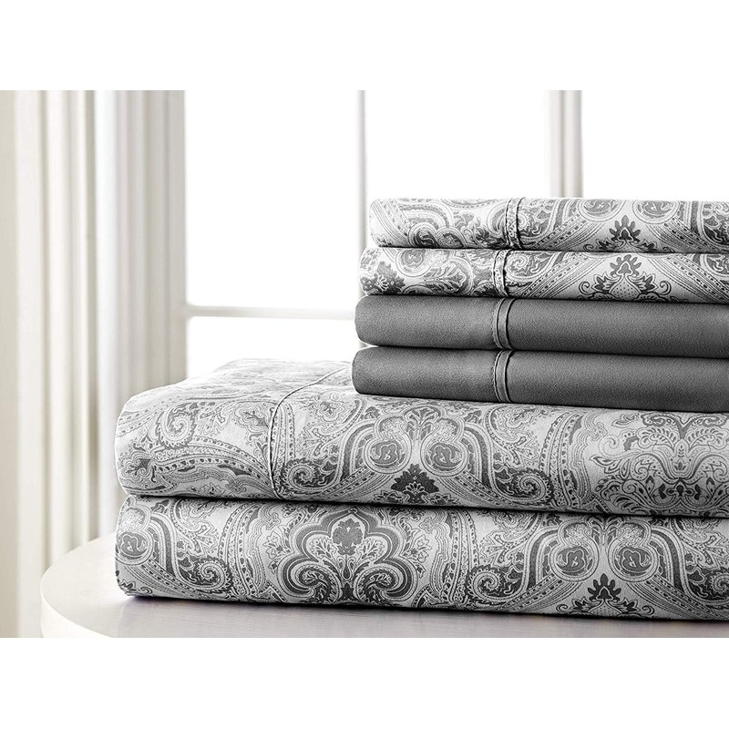Spirit Linen home King Size Sheets Set Deep Pockets - 6PC Paisley Ultra Soft Microfiber Bed Sheets Set - Easy to Clean, King Sheets with Fitted Sheets, Flat Sheet & Pillowcases (Dark Grey)