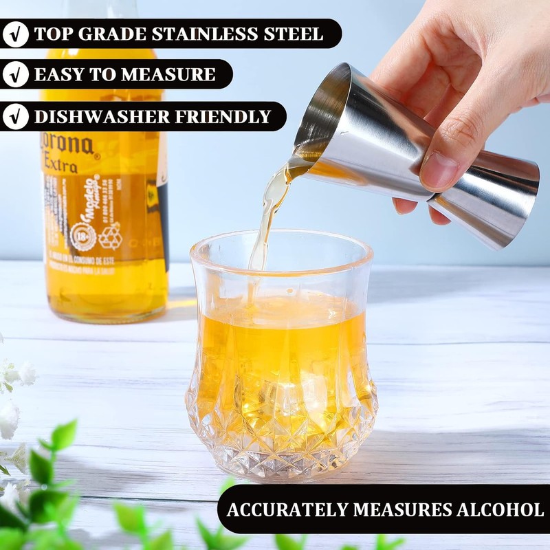 - Versatile and Practical: This jigger is not only suitable for measuring spirits but also perfect for measuring other ingredients like syrups, juices, and mixers. It's an essential tool for crafting a wide range of cocktails, from classic recipes to creative concoctions.