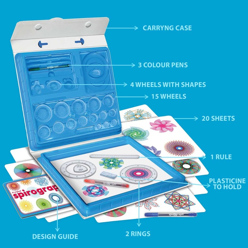 Spirograph Deluxe - Spirograph Junior | Spirograph Set For Kids Age 8 | Kids' Drawing & Painting Supplies | 47 Pieces | Spirograph Set For Adults | Drawing Games