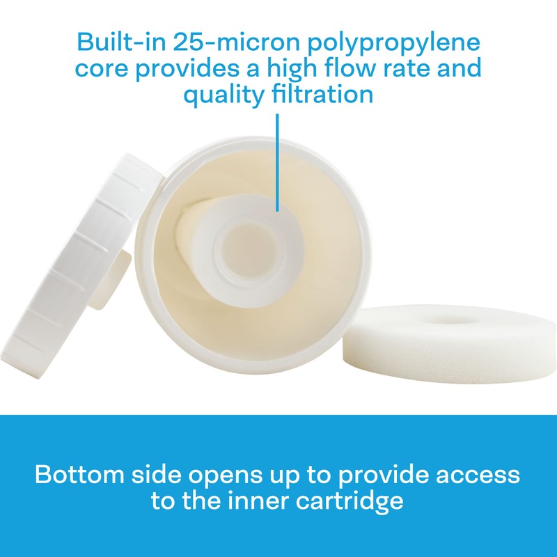 - Includes polyester pads to prevent carbon fines and other small filter media from escaping the filter cartridge