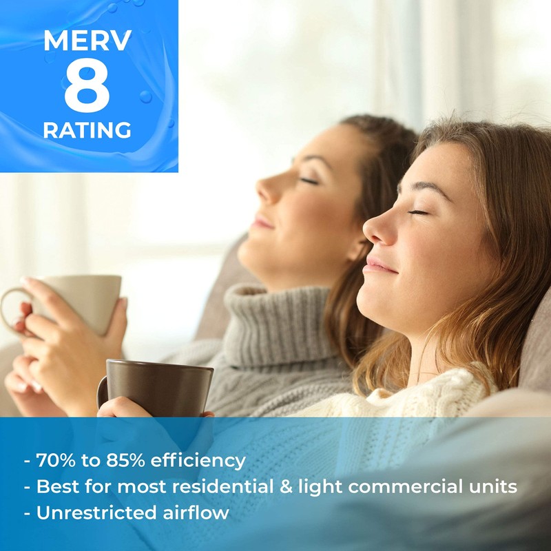 • MERV 8 RATING: With an efficiency of 70% to 85%, these filters are usually the best option for most residential homes & light commercial units, ensuring airflow in your HVAC system is unrestricted.