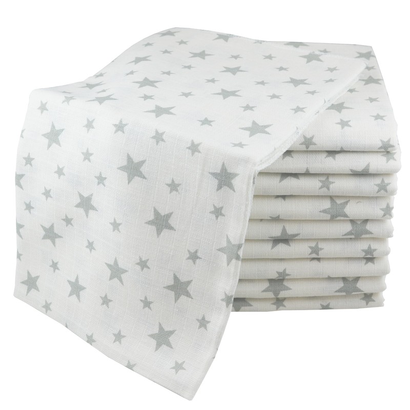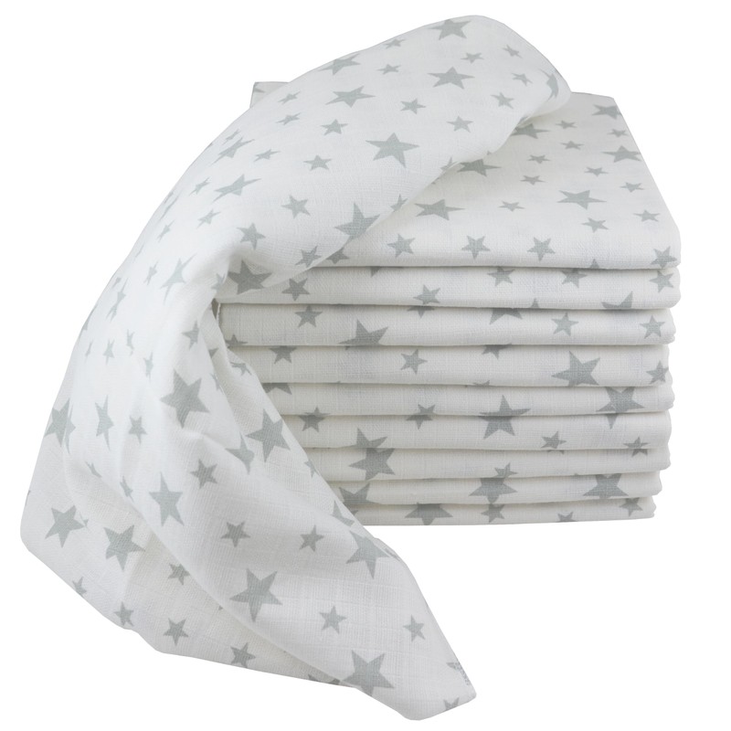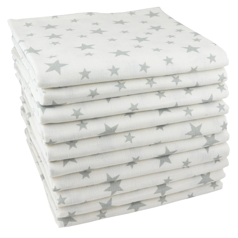 Muslin cloths are indispensable when it comes to baby equipment. They are all-rounders in a baby’s everyday life and keep baby's environment clean. Our muslin cloths are available in a pack of 10, for versatile use in everyday baby life. The absorbent, cuddly and non-toxic fabric fulfils all the requirements young parents have for their baby’s cloths.