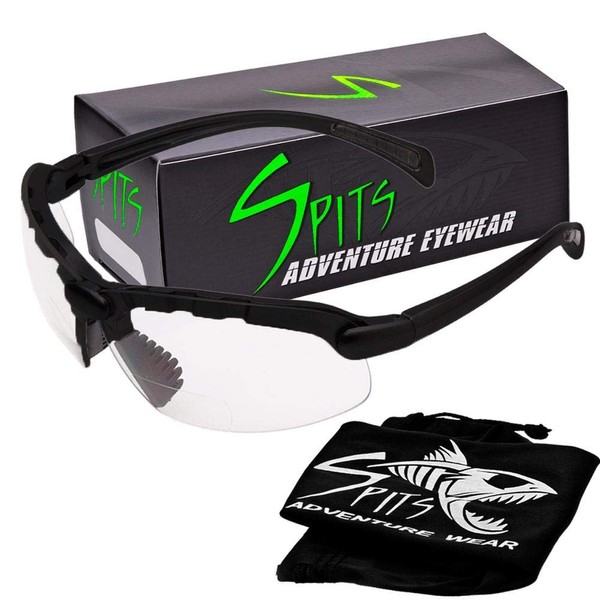 Spits Eyewear Top Or Bottom Bifocal Safety Glasses (Frame Color: Gloss Black, Magnifier: 1.25 TOP Clear)