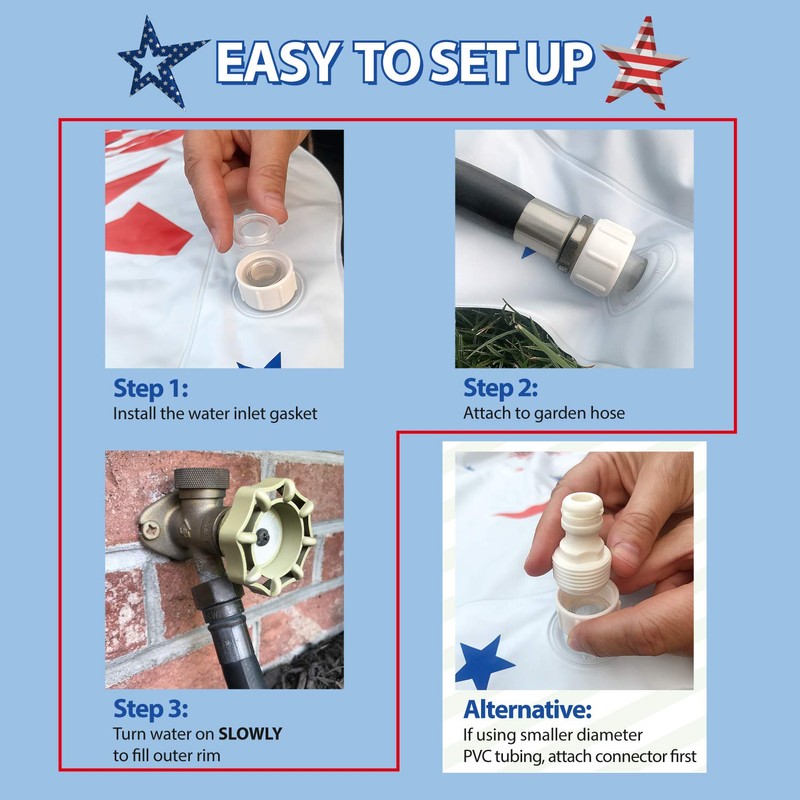 - Set Up In Seconds! Parents and kids both benefit because this large splash mat is super simple and quick to hook up to your garden hose, so your toddler/baby/kiddy/little ones will be swimming in just a few seconds. These splash pads/sprinklers are the perfect toys for 1 year old or any age who would enjoy a kids pool or baby pool.