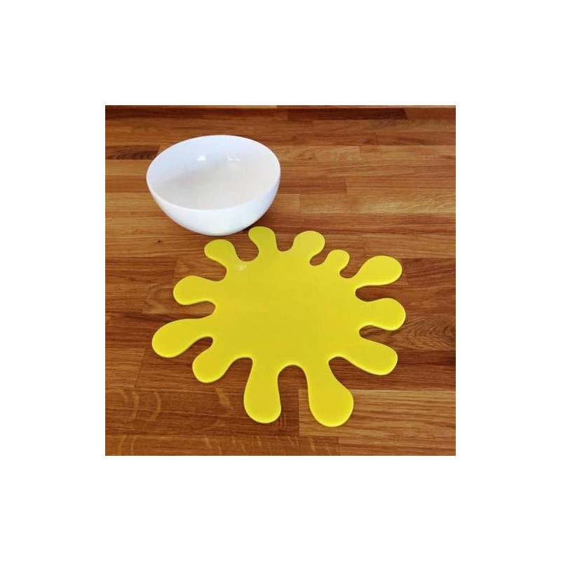 Shatterproof acrylic placemats, with anti-slip silicon feet (see photo). Heat resistant up to 80 degrees. Wipe clean with a damp micro cloth (Do not use abrasives or knives).