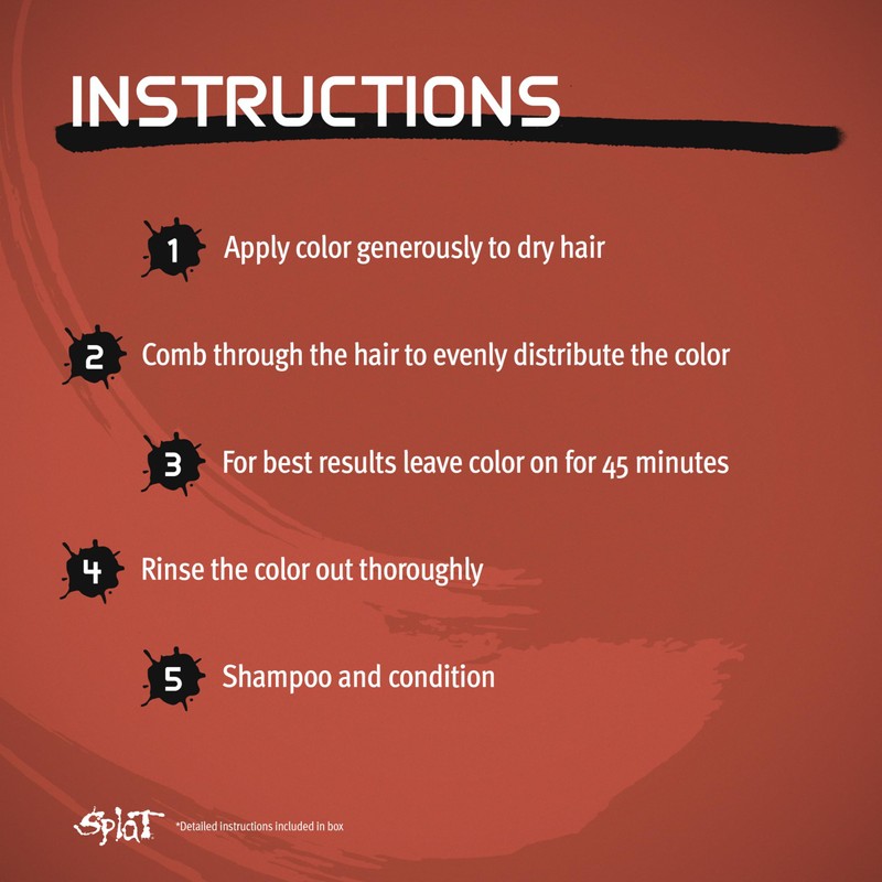 - SEMI PERMANENT HAIR COLOR: Splat Midnight Amber hair dye offers vibrant, bold color with no bleach necessary for up to 30 washes. Kit includes red dye, conditioner, gloves, and instructions.