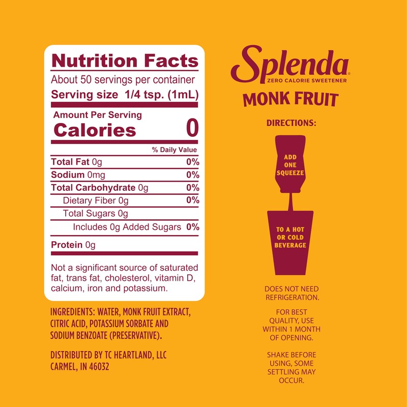 SPLENDA Monk Fruit Liquid Zero Calorie Sweetener Drops, 1.68 Fl Oz
