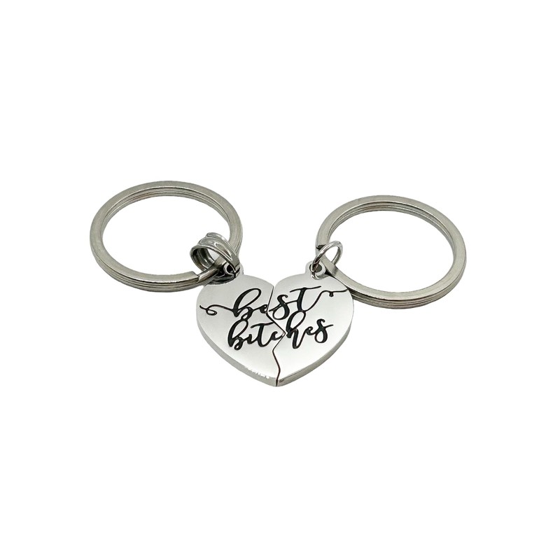 Split Hearts 'BEST B*TCHES' Matching Keychains Set for 2 (Stainless Steel) Miss Fit Boutique