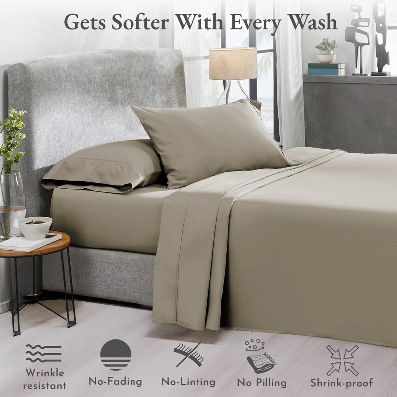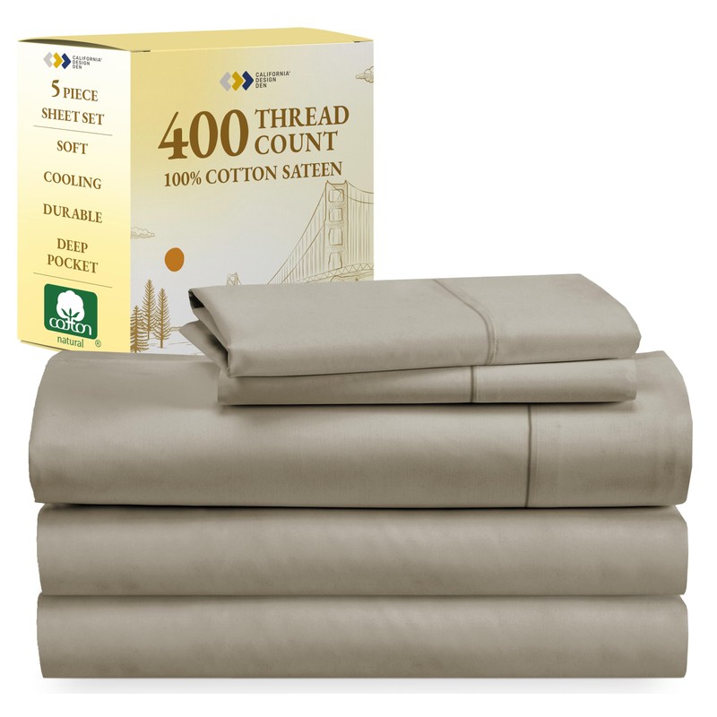 Split King Sheets for Adjustable Bed, Soft 100% Cotton Sheets, 400 Thread Count Sateen, Includes Twin XL Fitted Sheets, Deep Pocket Sheets, Cooling Sheets, Beats Egyptian Cotton Claims (Taupe)