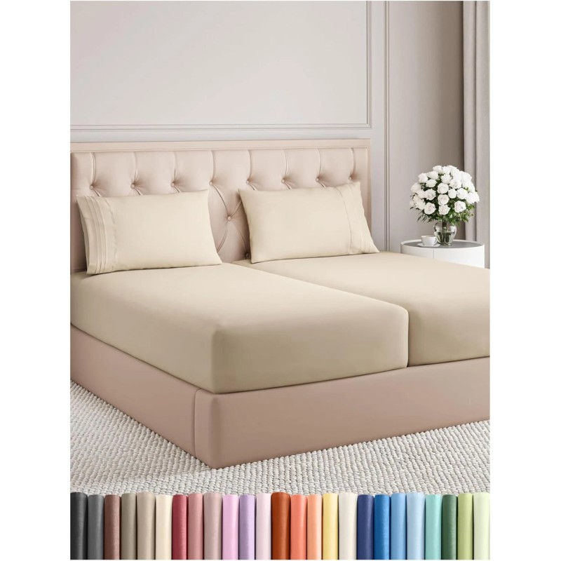 Split King Size 5 Piece Sheet Set - Comfy Breathable & Cooling Bed Sheets Set - Hotel Luxury Bedding for Women, Men, Kids & Teens - Deep Pockets, Easy-Fit, Super Soft & Wrinkle Free - Oeko-Tex - Wheat