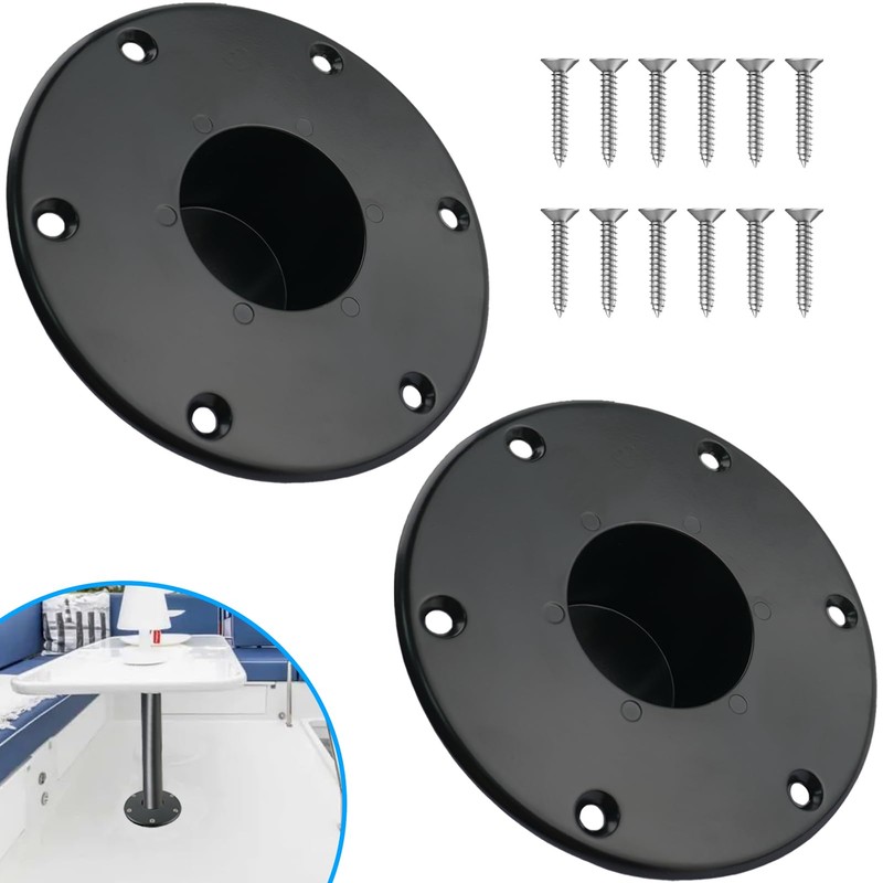 • PERFECT FIT & UNIVERSAL COMPATIBILITY: Compatible with 013-1112 Table Base and similar-sized RV table legs. Features a 5.91-inch outer diameter and 2.25-inch inner diameter with 6 pre-drilled mounting holes for effortless installation. A reinforced embedded design offers superior stability. Always double-check your measurements for a seamless match!