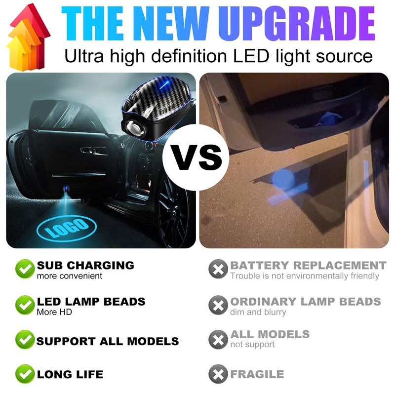 - 【Long-lasting Performance】: Our car door projector built-in lithium battery adopts USB charging, charging for 2 hours, achieving an ultra-long battery life of 20 days+, saying goodbye to frequent charging, saving power and low efficiency, and extending battery life to achieve continuous lighting.