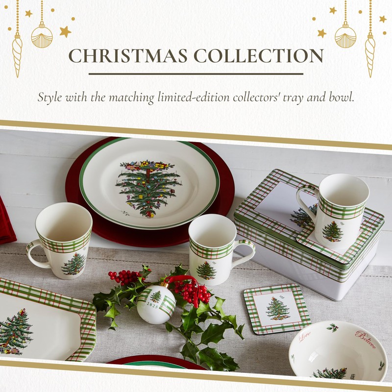 - Festive 2025 Design: A fresh update to the iconic Spode Christmas Tree, now paired with a striking plaid tartan pattern that brings heritage style to seasonal celebrations.