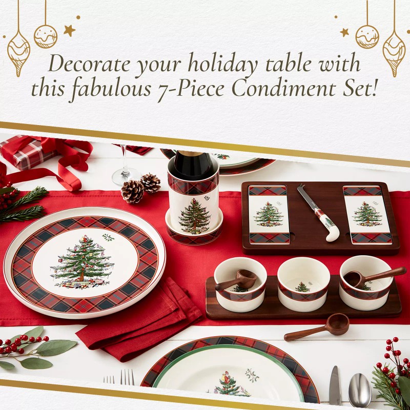 Set of (7) Spode Christmas Tree Tartan 7-Piece Condiment Set