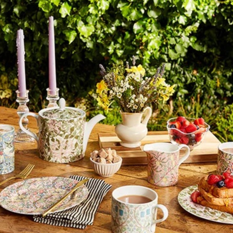 The Spode Morris & Co. The series uses the most famous designs such as Strawberry Thief, Brophy Trellis, Acanthus and Marigold by William Morris on mugs and small gift items. All items come in a quality gift box. Made from hard-fired fine ceramic, all cups, tablets and jewellery jars are dishwasher and microwave safe.