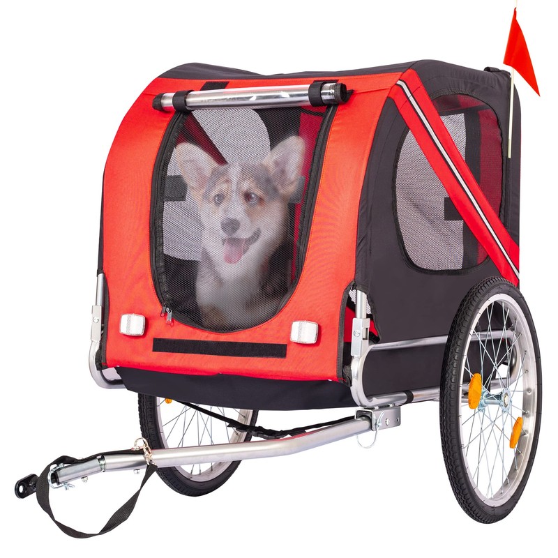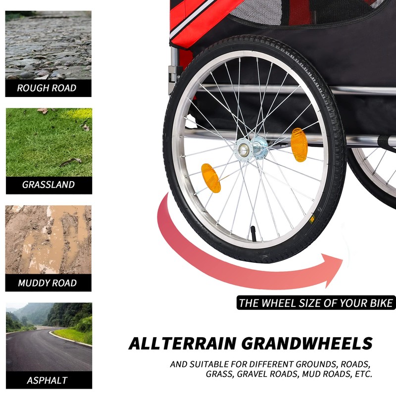 - With The red flag on the dog carriage and reflectors on the wheels provide visibility in traffic and low-light conditions.