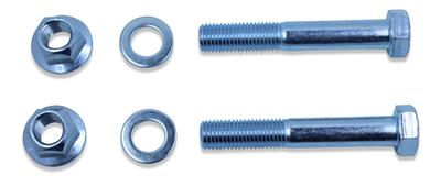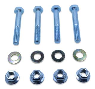 This package also includes six (6) Grade 10.9 bolts, six (6) flat washers and six (6) flanged "Top Lock" nuts for the rearward ends of the front lower control arms and both ends of the front upper control arms.