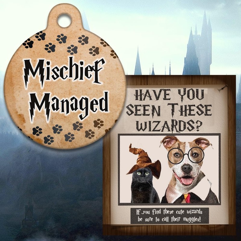 Spoilt Rotten Pets 19mm Mischief Managed Pawrauders Map Wizard Dog Tag Cat Identity Disc, ID Tag, Pet Tag Custom Printed Contact Details Tiny Dogs, Chihuahua & Cats