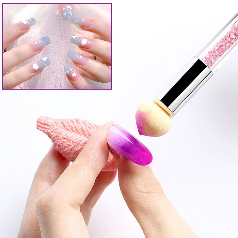 Sponge and Brush, Double Head Sponge Brush for Nails, Nail Brush with Sponge for Gradient on the Nail and Gradient, Includes 4 Replacement Heads