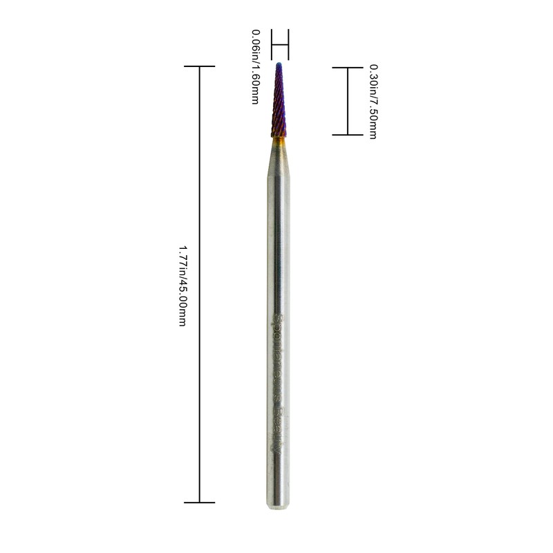 Spontaneous Beauty Premium Nail Carbide Bit for Under Nail and Cuticle Cleaning, 3/32" Shank (Fine - F, Purple - Sharp Point)