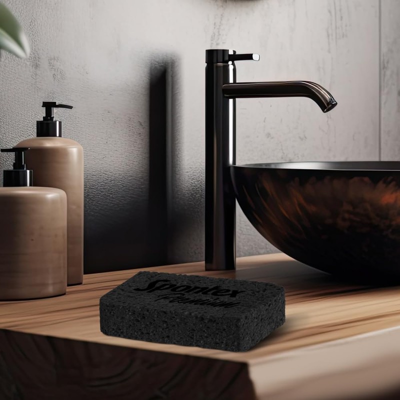 SPONTEX Premium Souring Sponge, Black, Pack of 3, Made from 100% Biodegradable Cellulose, Robust and Absorbent, Swollen Approx. 108 x 68 x 30-32 mm