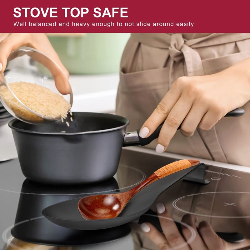 - LARGE SIZE - Measured 9¼(L) x 3¾(W), Large holding capacity and wide enough for pretty much anything, Perfect for resting both large and small items from cooking spoon to spatula, tongs, serving spoon, mixing spoon, soup spoon, ladle, sauce spoon, etc.