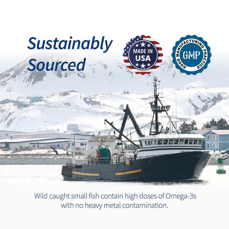 - WHAT OUR OMEGA 3 IS MADE OF: Wild caught small fish contain high doses of omega 3 and has no heavy metal contamination. Fish are sustainably sourced to ensure production of a safe and healthy product for our customers