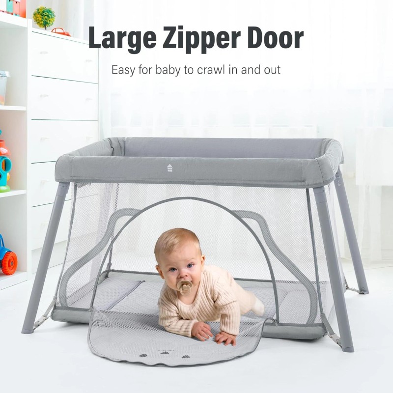 - 【Convenient Side Zipper Door】The sides of the baby playpen are made of soft and breathable mesh, allowing you to see every adorable movement of your baby. You can also interact with and care for your little one easily through the side zipper door.