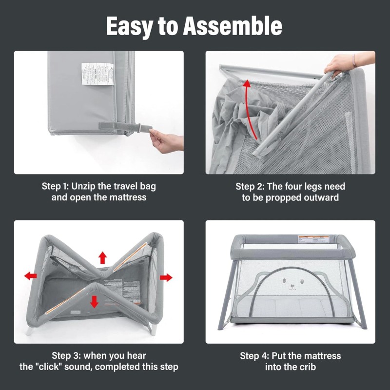 - 【Lightweight and Portable】The 3D Z-folding technology making the travel crib extremely compact,whether it's for outdoor use,car trips,et.It is a must-have ideal travel companion for babies and toddlers.The net weight is only 17.2 lbs,and the tool-free design can be installed within 1 minute. Its lightweight design makes transport a breeze, and its ease of assembly and disassembly is unrivaled.