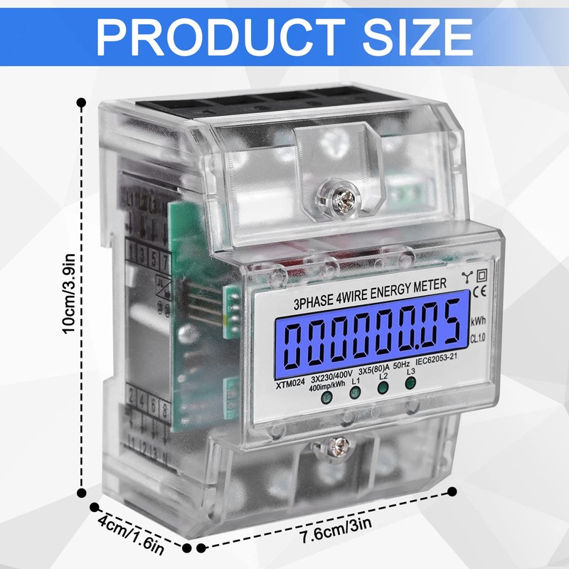 - Precise measurement: digital electricity meter with LCD display can display the power status (L1, L2, L3), the pulse signal (400 imp/kw/h, the pulse LED must flash when working), intelligent measuring chip, sensitive conductivity and accurate monitoring of power consumption, 8-digit backlit LCD display, 6+2-digit display (9999). 9,11 kWh) three-phase meter displays data clearly and accurately
