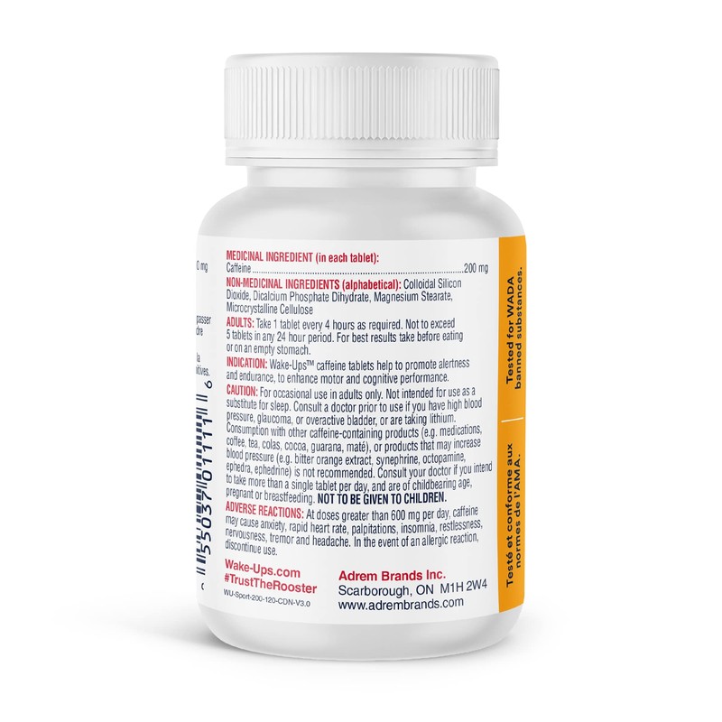 Sport Certified Wake-Ups 200mg Extra Strength Caffeine Tablets | Tested for WADA banned substances | 120 count