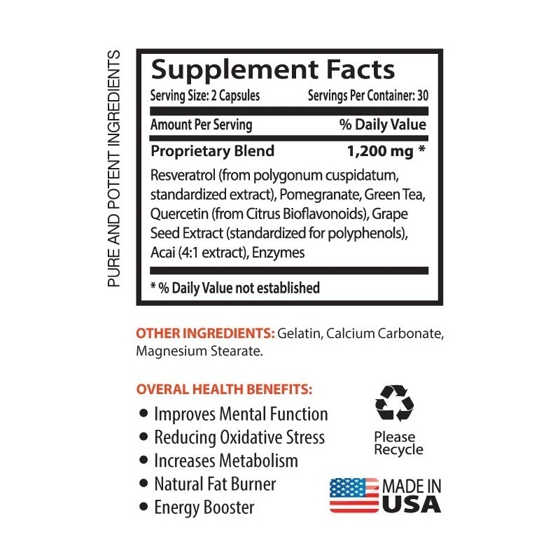 SPORT NUTRITION & VITAMINS Natural vitality glow - RESVERATROL SUPPORT - Skin health focus 3 Bottles 180C