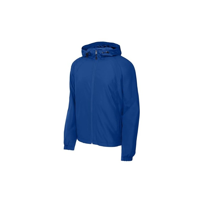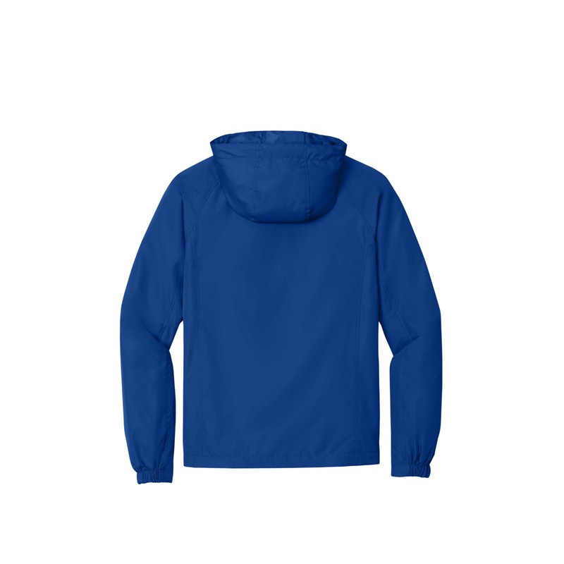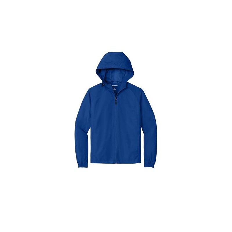 Style #: TJST73 A hit on or off the field this water-repellent jacket is comfortable stylish and quiet. Available for adults and youth this favorite has a sporty hood and raglan sleeves. It also offers an unrestrictive fit and provide lightweight weather protection. 100% polyester shell 100% polyester jersey lining with mesh insets at gussets for added breathability Drawcord hood with toggles Side pockets Articulated elbows for greater mobility Half elastic half self-fabric cuffs for comfort Drawcord hem with togglePort Pocket at left chest for easy embroidery access