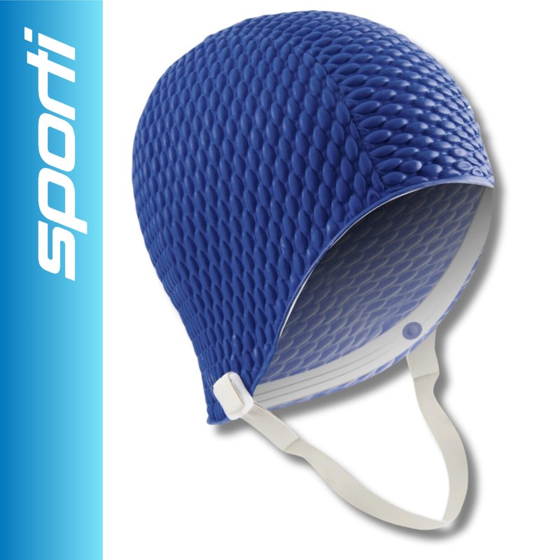 Sporti Bubble Swim Cap with Chin Strap (Navy)