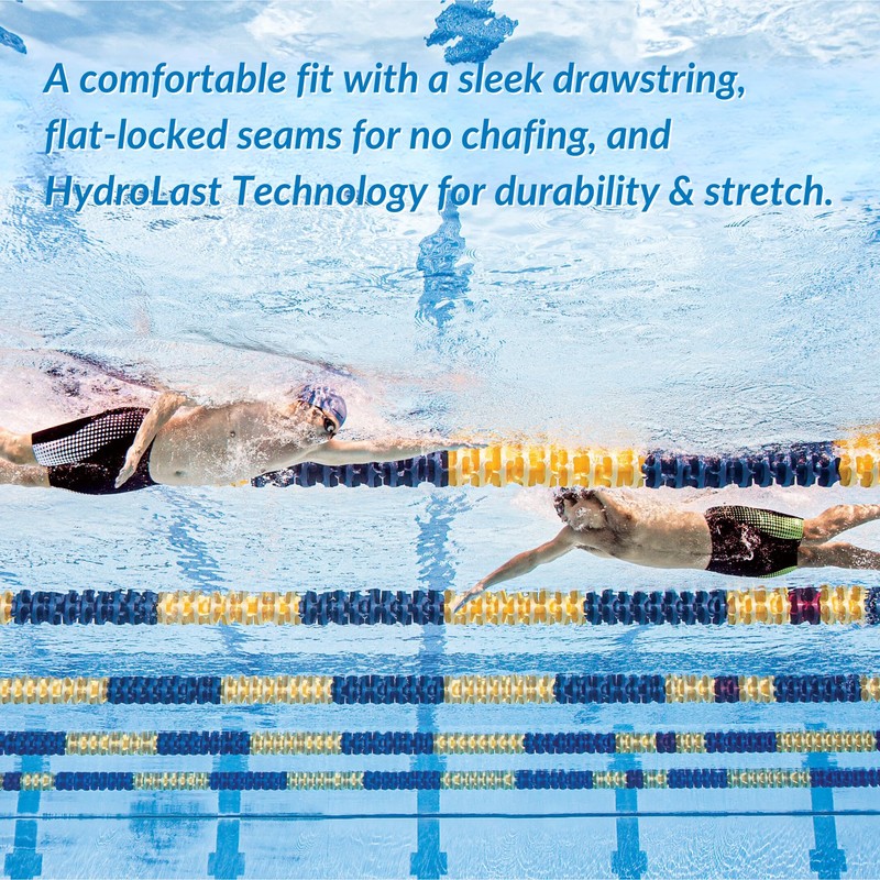 - Comfort and Fit: Features a secure drawstring waistband and flat seam construction for a snug, irritation-free fit, allowing swimmers to focus on their performance without discomfort.