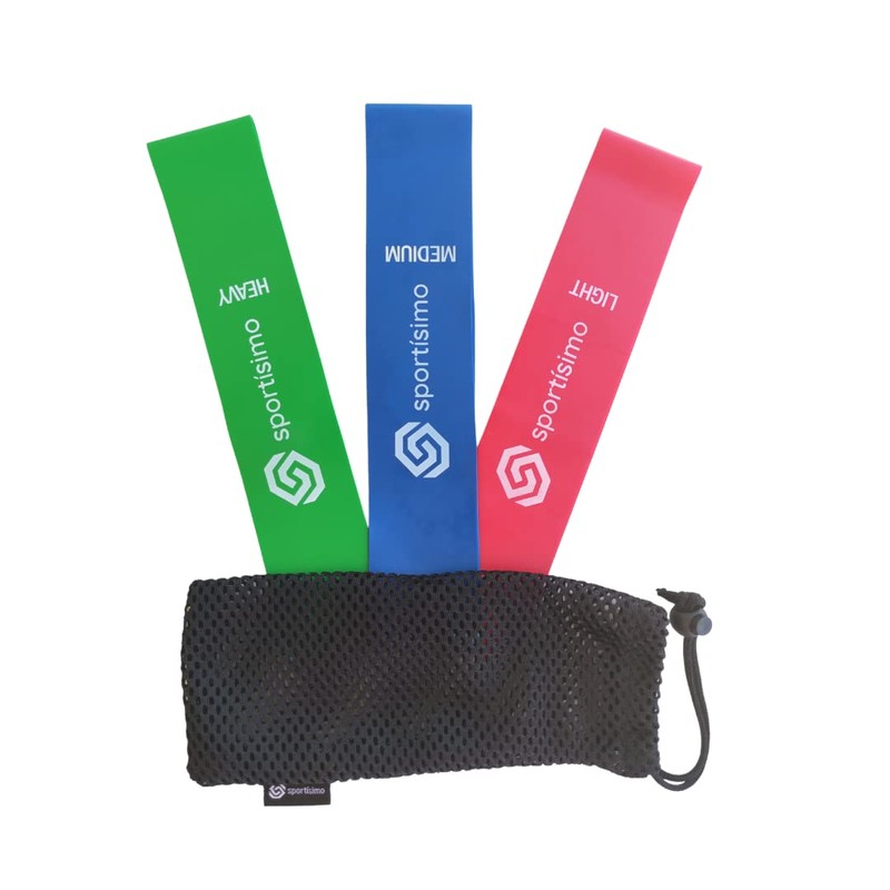 Sportisimo Set de 3 Mini Ligas de Resistencia Bandas Elásticas de Ejercicio Gimnasio Gym Gluteo Piernas
