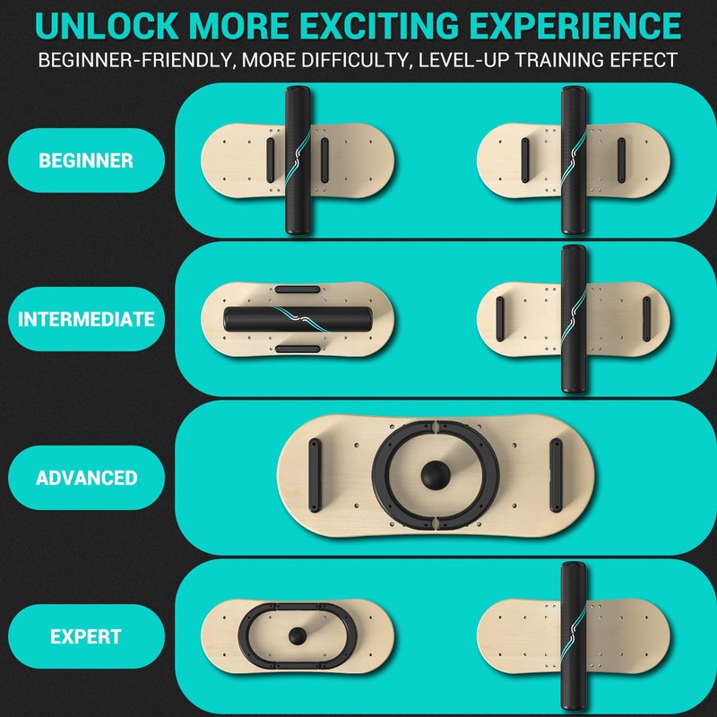 - 2-in-1 Versatile Set: Each set comes with 1 balance board, 1 roller and 1 ball that provides 7 unique challenge modes, allowing you to progressively work your way up to improve your strength and balance. Plus, the 4 individual magnetic removable stoppers ensure smooth switch between modes and convenient disassembling.