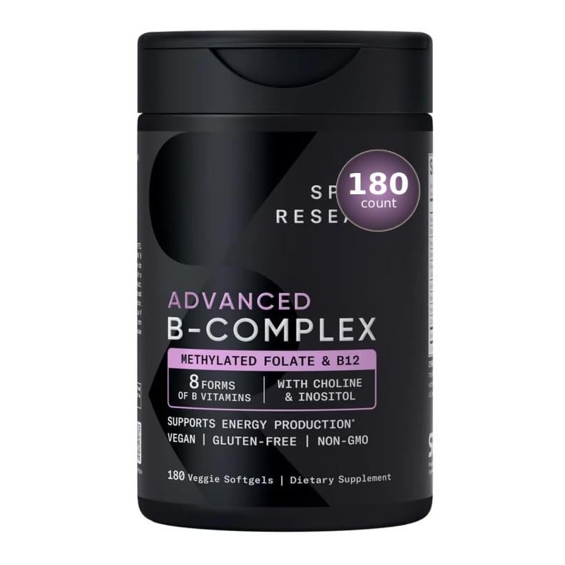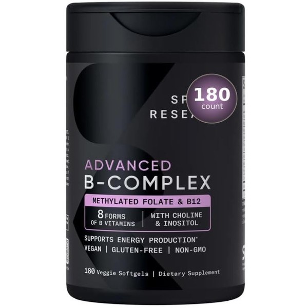 Sports Advanced B-Complex with Methylated Folate & B12-3 Month-Supply - Vegan, Gluten Free, Non-GMO Energy - 180 Count + Exclusive Vitamin Guide Adv
