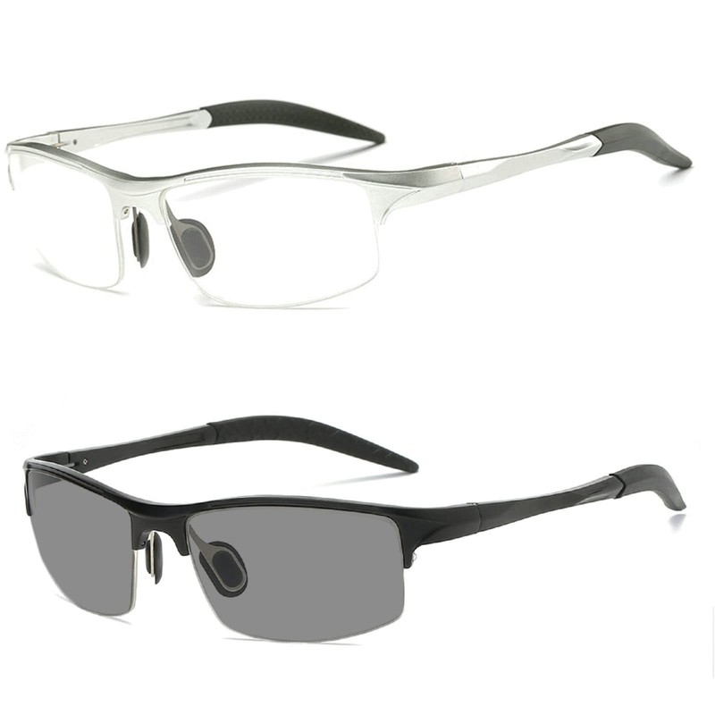 sports cycling full lens Reading Glasses Men Presbyopia Hyperopia Glasses Transition Sun Photochromic Sunglasses Reader (2pcs-black&silver, 0, multiplier_x)